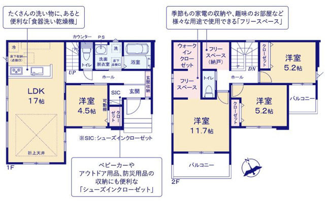 | 設備 | エコジョーズ / バルコニー / 南面バルコニー / 2面バルコニー / ベランダ / フローリング / 全居室フローリング / 玄関ポーチ / 玄関ホール / TVモニタ付インターホン / 折上天井 / 天井が高い / 外壁サイディング / ベタ基礎 / 築2年以内 / 東南向き / 2面採光 / 南面4室 / 南面リビング / LDK15帖以上 / フリースペース / 駐車4台可 / 駐車並列2台 / 庭 / 南庭 / システムキッチン / 対面式キッチン / 3口以上コンロ / キッチンに窓 / 食器洗乾燥機 / キッチン未使用 / バス・トイレ別 / 浴室未使用 / トイレ2ヶ所 / 温水洗浄便座 / トイレ未使用 / 洗面台 / 洗面所に窓 / 洗面所にドア / 洗面化粧台 / 洗髪洗面化粧台 / 暖房便座 / クロゼット3ヶ所 / ウォークインクロゼット / シューズボックス / 玄関収納 / 全居室収納 / 納戸 / 床下収納 / 収納豊富 / 平坦地 / 1種低層 / 閑静な住宅地 / バス停徒歩3分以内 / 市街地が近い / 隣家との間隔が大きい / 周辺交通量少なめ / スーパーが近い / 年度内入居可 / 年内入居可 / 眺望良好 / 通風良好 / 陽当り良好 / スクール向け / ファミリー向け / 土地70坪以上 / 南側道路面す | ||